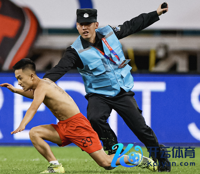比赛第34分钟的时候,比分蓝本如故0:0的,倏得有一个球迷跋扈的冲入场内,启动绕着赛场决骤,他得跑了一圈多,最终才被几个现场的安保给扑倒在了地上,抬出场外。但是便是这个球迷跑进场了,这一下子导致国足受到了严重的影响。