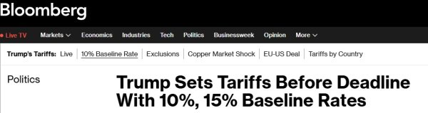 FX168财经报社(亚太)讯 白宫当地时辰周四(7月31日)通知,好意思国总统特朗普(Donald Trump)将保管10%的群众最低关税,而对好意思国营业顺差国度的入口居品将靠近15%或更高的关税。