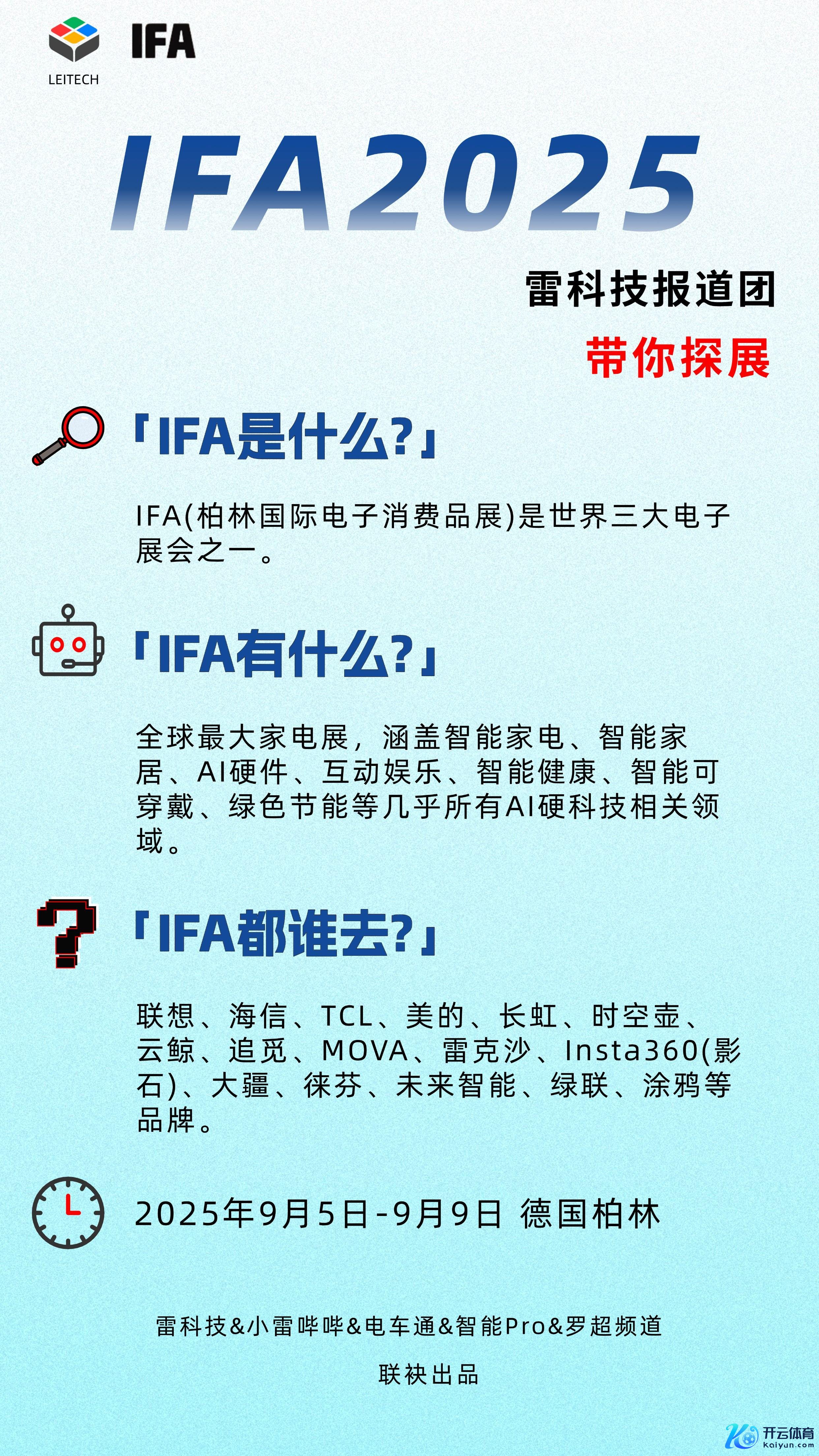 9月5日-9日,天下最全球电与奢华电子展IFA2025在柏林恢弘开幕。联思、海信、TCL、好意思的、长虹、海尔、时空壶、改日智能、安克、绿联、云鲸、追觅、MOVA、添可、影石Insta360、大疆、万得厨、涂鸦、徕芬、影目、Rokid等中国科技巨头云集柏林,向天下呈现中国AI硬科技的统帅力。雷科技IFA2025报谈团行将飞赴现场探展,伸开全程跟踪报谈,敬请矜恤!
