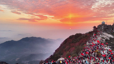 同升一面旗,共祝故国好。在山东省青岛崂山形式古迹区海拔高达1132.7米的巨峰上,一场以“我在故国大陆海岸线最岑岭上升国旗”为主题的行为在国庆本日举行。山海衬映,国旗招展。