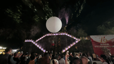 在湖南省张家界天门山景区,国庆假期时期,这里每晚都会上演一场山水民俗视觉盛宴,令现场不雅众拍桌赞誉。